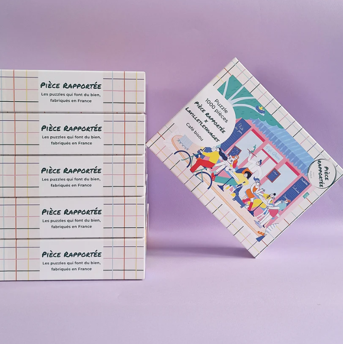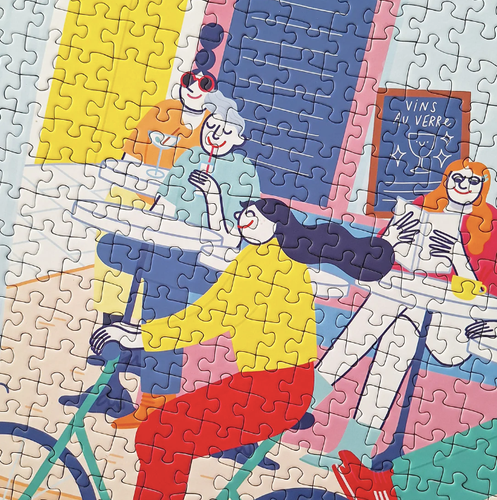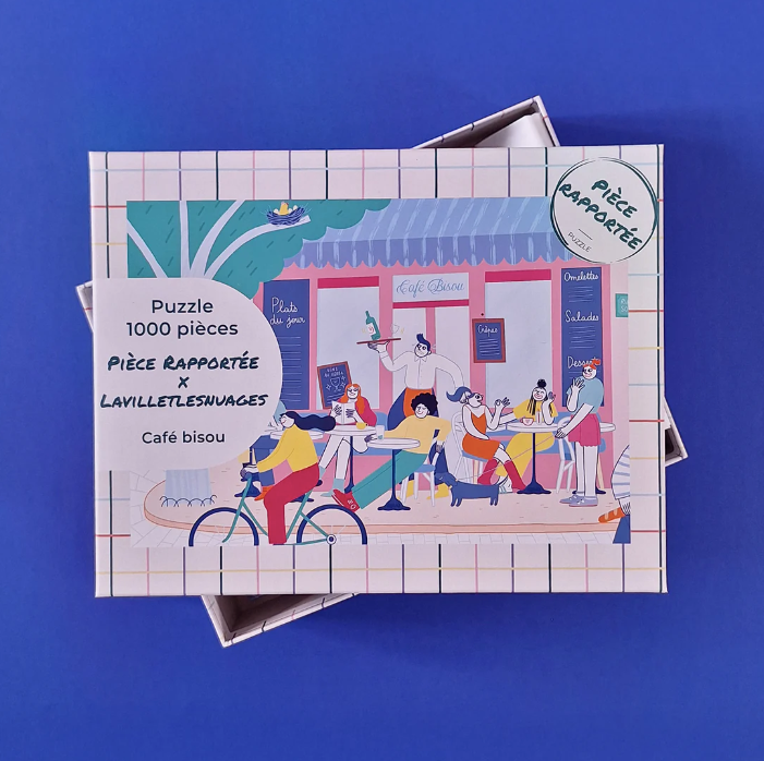 Ce puzzle 1000 pièces, avec sa jolie terrasse de quartier, est une ode à la convivialité. Au café bisou, chacun est le bienvenu pour prendre du temps pour soi, se prélasser au soleil ou papoter entre amies. Et même nos fidèles compagnons y ont leur habitude, c'est pour dire à quel point on s'y sent bien !