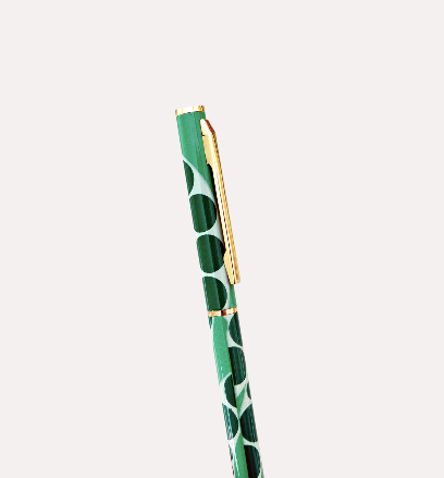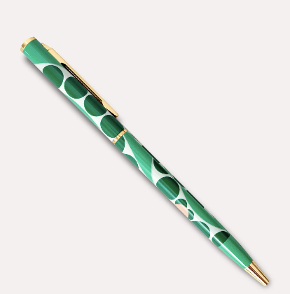 Rendez l'écriture un peu plus fabuleuse avec ce stylo en acier laqué imprimé. Il est doté de motifs abstraits dessinés par The Completist et d'attributs plaqués or. Il a une pointe fine et une encre noire. Et c'est rechargeable ! (Recharges vendues séparément)