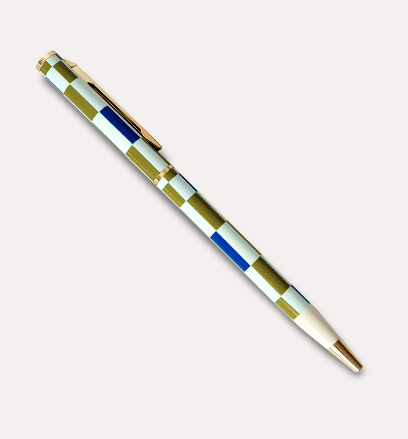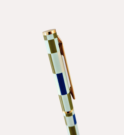 Rendez l'écriture un peu plus fabuleuse avec ce stylo en acier laqué imprimé. Il est doté de motifs abstraits dessinés par The Completist et d'attributs plaqués or. Il a une pointe fine et une encre noire. Et c'est rechargeable ! (Recharges vendues séparément)