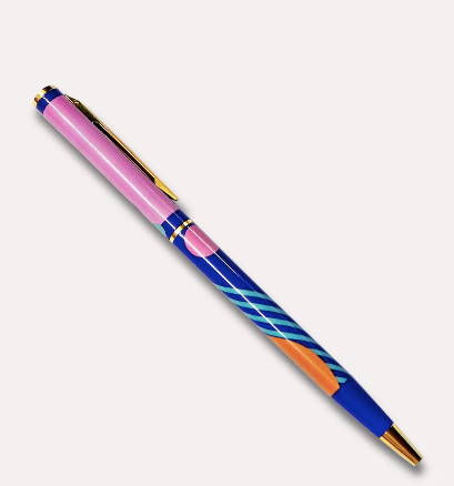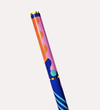 Rendez l'écriture un peu plus fabuleuse avec ce stylo en acier laqué imprimé. Il est doté de motifs abstraits dessinés par The Completist et d'attributs plaqués or. Il a une pointe fine et une encre noire. Et c'est rechargeable ! (Recharges vendues séparément)